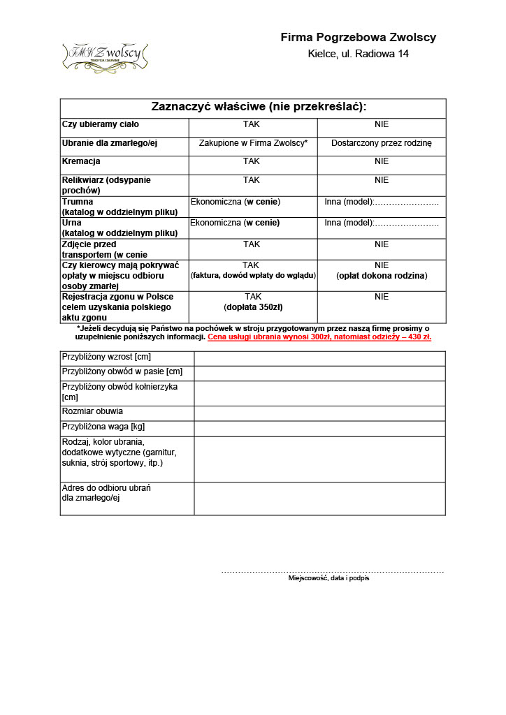 ZWOLSCY TRANSPORT - Krajowy i międzynarodowy transport zwłok Kielce